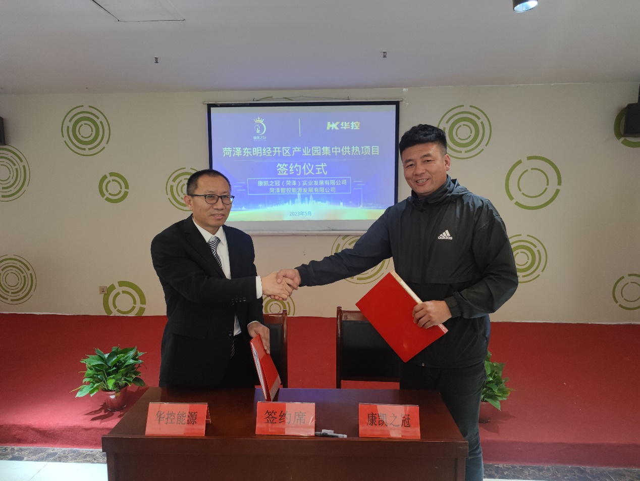 2023年56日下午,青島華控能源科技有限公司旗下菏澤智控能源發展有限公司與康凱之冠(菏澤)實業發展有限公司菏澤市舉行了菏澤東明經開區集中供熱項目簽約儀式。